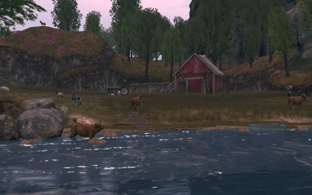 Now before I start talking about anything I must apologize for any textures that look brutally horrible in my two photos I did my best in taking them within the firestorm viewer and the settings I used to capture the elements on my avatar. I am at Auld Lang Syne in the Isles Of Scotland sim. The location is gosh my favorite and to be honest this is the 5th time being in Auld Lang Syne. A few reasons why I can’t stay away is because of the buildings and all it’s animals Elo Moon did outstanding with the location and the wind light she has is great but I didn’t use it and I know I should so I will right now take one more photo of this amazing place and show you and yes I’ll use the windlight Elo has set.